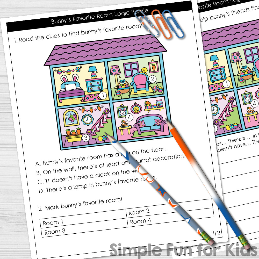 Find Bunny’s Favorite Room Logic Puzzle Printable