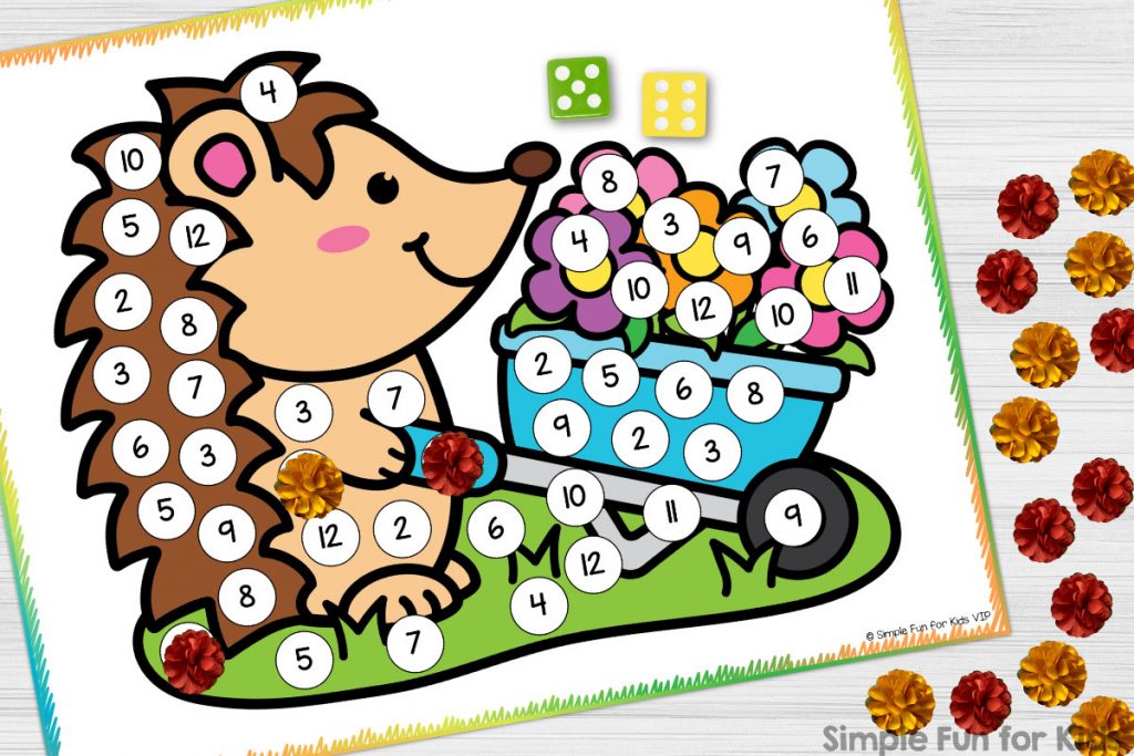 Spring Hedgehogs Roll, Add, and Cover Game